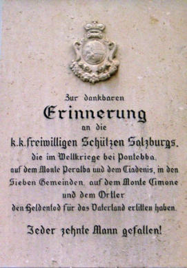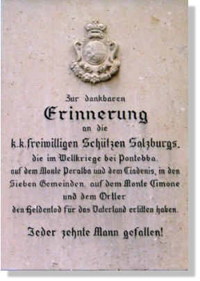 Gedenktafel für die ehemaligen k.k. Freiwilligen Schützen Salzburg am Neugebäude der Salzburger Residenz, Residenzplatz 9